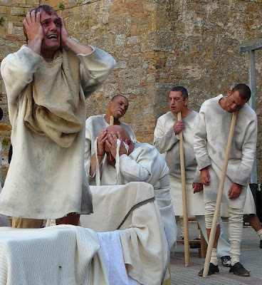 nelle foto: tre belle immagini scattate da t. nel carcere di volterra il 23 luglio 2008. in scena, marat sade. realizzato dalla compagnia della fortezza con la regia di armando punzo.
